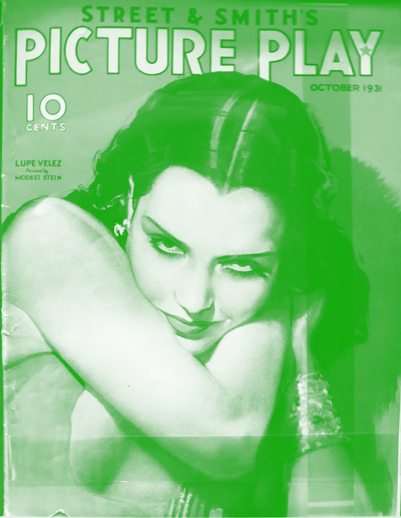 Lupe Velez's come hither eyes beckon from her cover of Picture Play magazine, standing out from the demure ladies who surround her on the Fan Magazine wall. Velez was regularly cast as fiery, spitfire "exotic" women in her films, and coupled with her volatile personal life, was often referred to as the "Mexican Hurricane" and "The Hot Tamale" in gossip magazines.