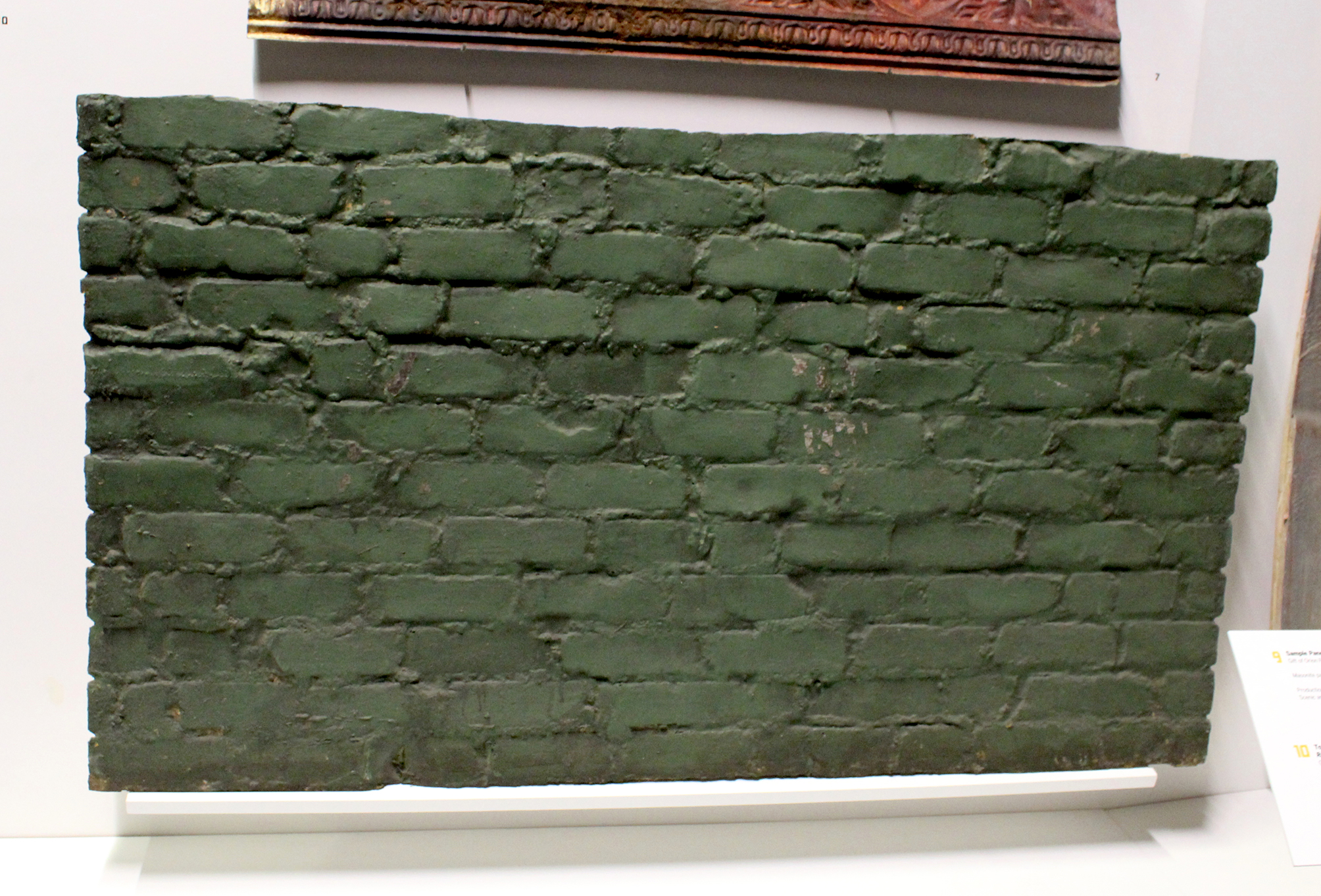 Sample of painted brick wall from the production of Mo' Better Blues (1990), exhibited alongside other artifacts in Behind the Screen.
